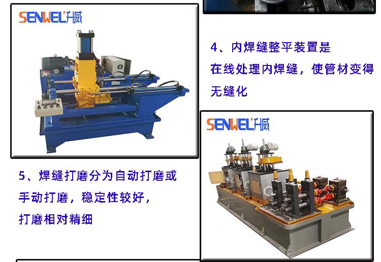 業(yè)。工業(yè)制管機(jī)與裝飾機(jī)相比,差異主要體現(xiàn)在增添了焊縫處理與退火設(shè)備,使得工業(yè)焊管更加接近于無縫