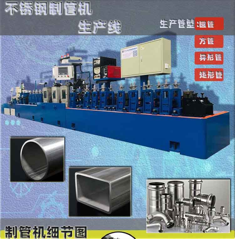圓形/方形/矩形/異形等不銹鋼/銅/碳鋼/鐵/鍍鋅等金屬裝飾管焊管機械設備生產線 裝飾制管機以生產不銹鋼等金屬裝飾管為主的設備。可以用于生產扶手、欄桿、桌椅、門、窗等強度低、觀賞性要求高的管材。可以生產圓形,方形,矩形,異形等形狀,適用于不銹鋼、鐵、銅/鍍鋅等金屬材質的管材制造。
